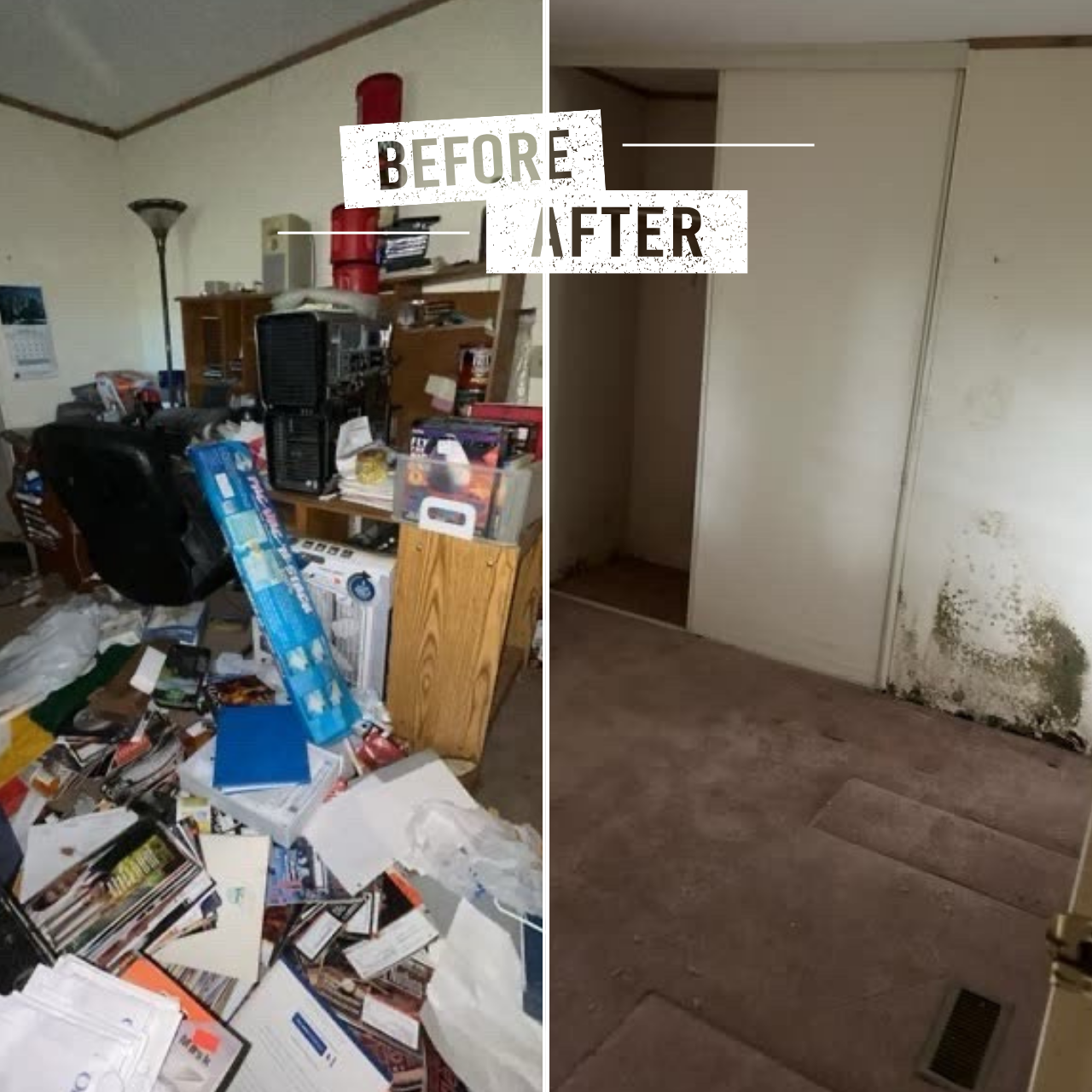 This heavily cluttered room was fully emptied, sorted, and cleaned to restore safe access and reclaim usable space. We specialize in sensitive cleanouts with care, privacy, and professionalism.